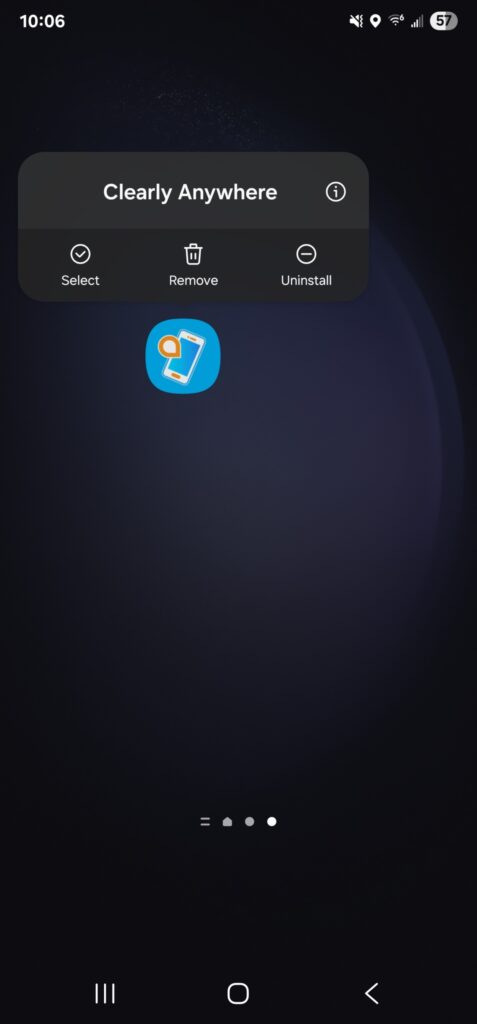 While the app will work without doing this, this process will ensure that the Clearly Anywhere app is set to not goto sleep. Hold the app and tap the information “i” button.